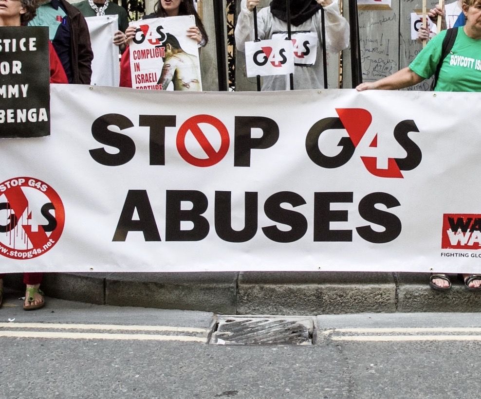 G4S protest after the death of Jimmy Mubenga, who was restrained on a deportation flight by G4S staff and later died.